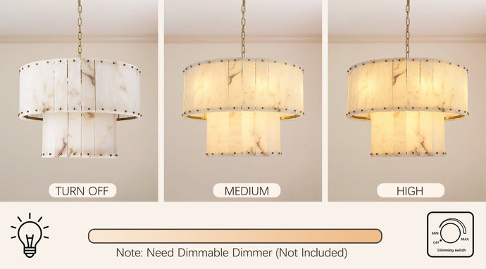 This alabaster chandelier is even more stunning in person—photos don’t do it justice. Installed above my living room, its soft, diffused glow creates instant warmth. The natural veining feels alive, especially with the included dimmable bulbs. Being able to adjust the light tone makes it perfect for any mood. A true masterpiece worth every dollar.
