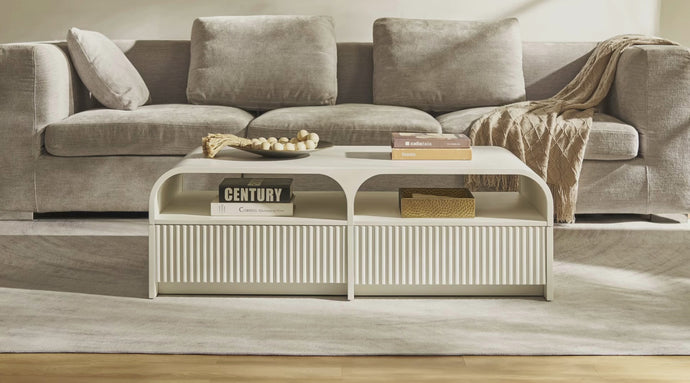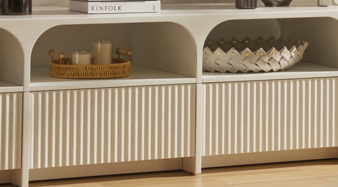 This furniture features a classic arched stripe design with white matte laminate for a clean, layered look. Its matte finish adds warmth and easy care, while sturdy 18mm construction ensures durability. Blending vintage and modern styles, it enhances any space with beauty, practicality, and lasting quality.