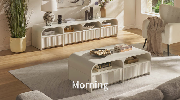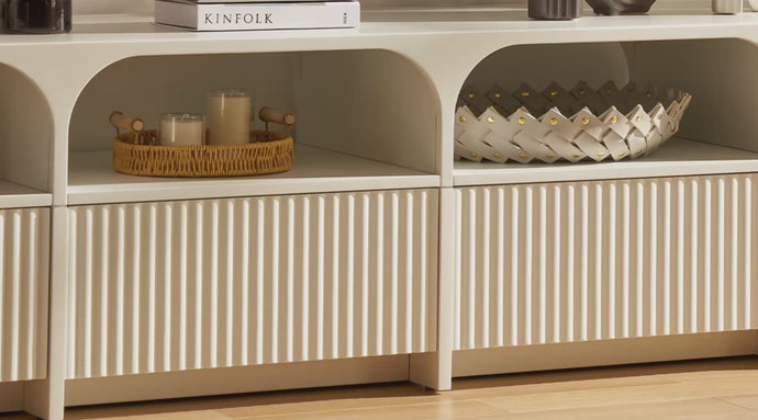 This product line features a modern design with arched striped panels, exuding organic curves and understated elegance. Soft rounded corners evoke a nostalgic yet contemporary warmth. The collection seamlessly blends aesthetic appeal with practical functionality.