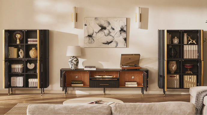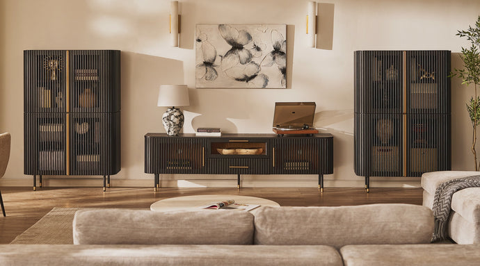 Light interacts with texture, and proportion finds its rhythm. Together, the Media Console and Cabinet anchor the room with quiet elegance—creating a composed, artful balance within the space.