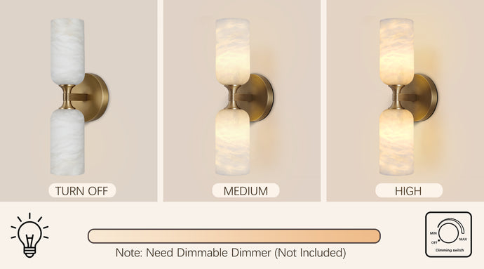 Crafted from natural alabaster stone, this fixture delivers a warm, softly diffused glow with fully dimmable lighting. Please note that a compatible wall dimmer is required and should be prepared by the customer. The inherent translucence and organic veining of alabaster create an elegant atmosphere that adjusts effortlessly to your preferred brightness.
