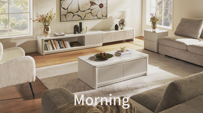 The coffee table reveals generous storage space as it transitions from fully closed to partially open. Perfect for keeping daily essentials neatly tucked away yet easily accessible—style meets practicality in one smooth motion.