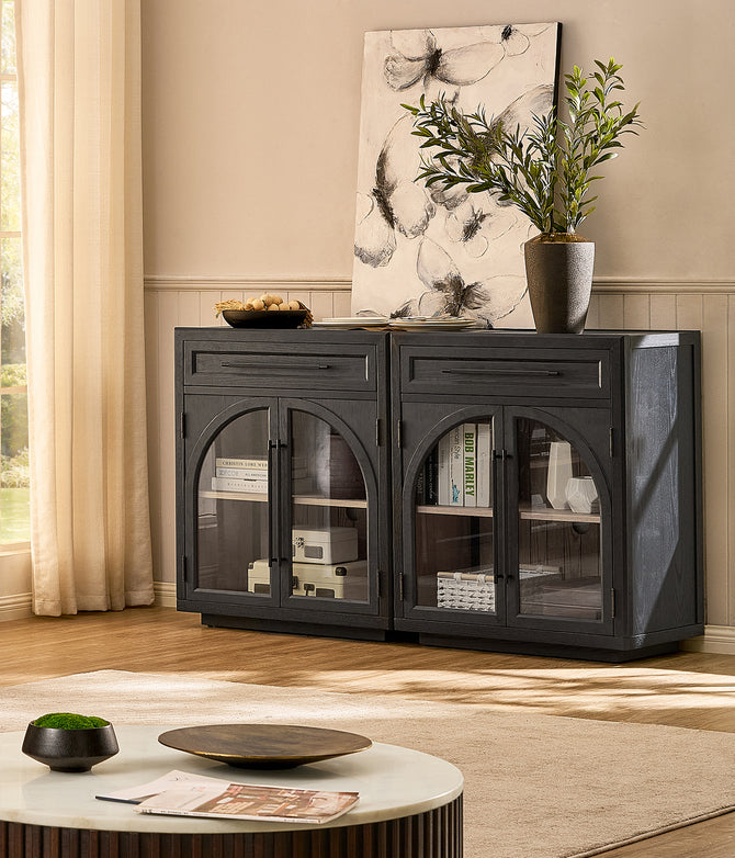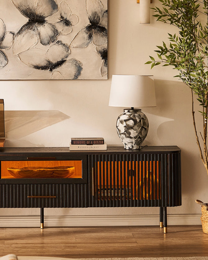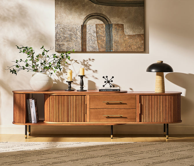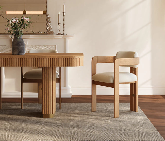 This Ewan design embraces mid-century aesthetics, drawing inspiration from the tranquility of nature while seamlessly blending modern minimalism with vintage charm. The large curved silhouette combined with wave-like solid wood slats enhances the smooth flow of modern lines. Rounded edges paired with minimalist contours evoke a sense of nostalgic retro atmosphere. Attention to craftsmanship highlights the natural wood grain, offering a warm and tactile experience. Altogether, these thoughtful details bring warmth and comfort to carefully curated living spaces.