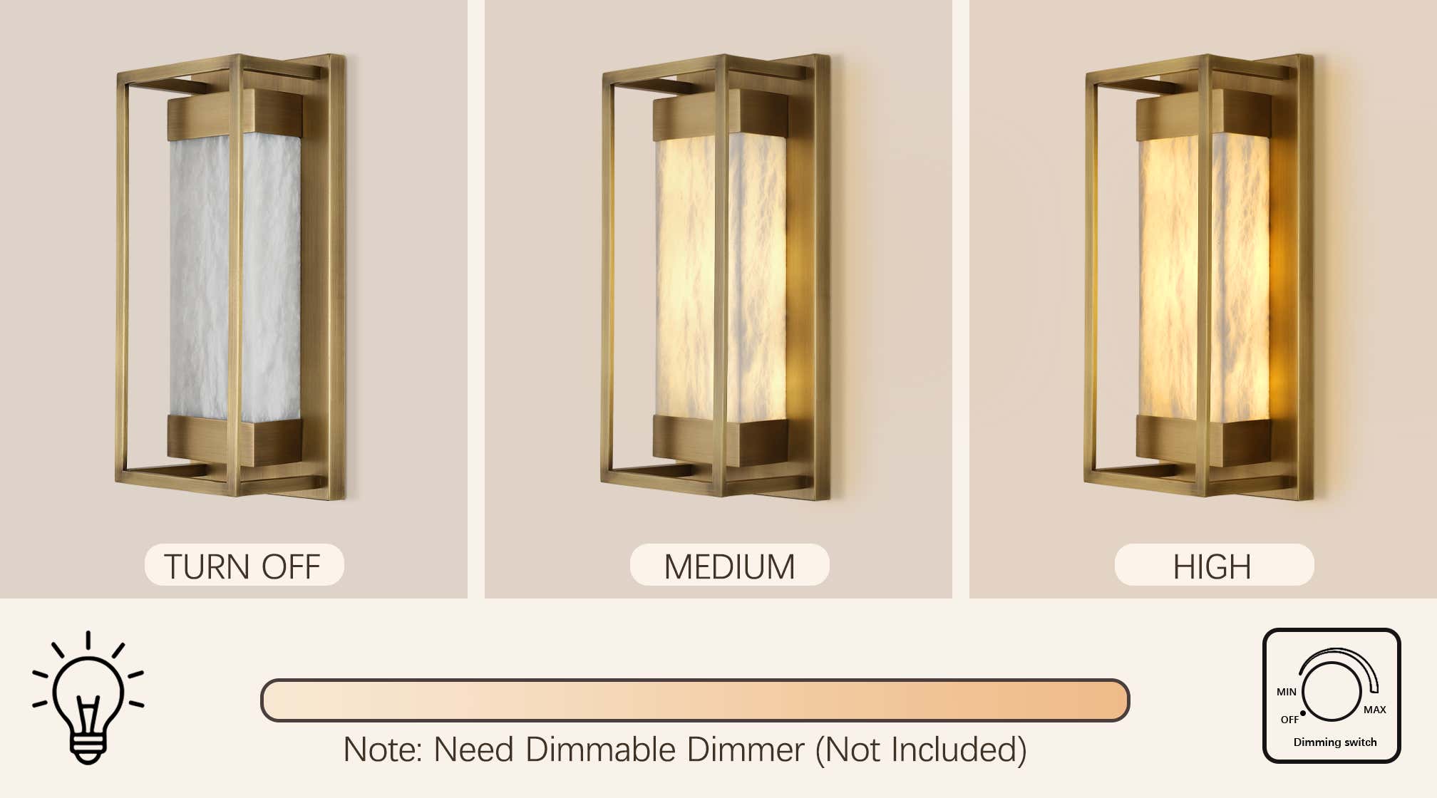 Crafted from natural alabaster stone, this fixture delivers a warm, softly diffused glow with fully dimmable lighting. Please note that a compatible wall dimmer is required and should be prepared by the customer. The inherent translucence and organic veining of alabaster create an elegant atmosphere that adjusts effortlessly to your preferred brightness.